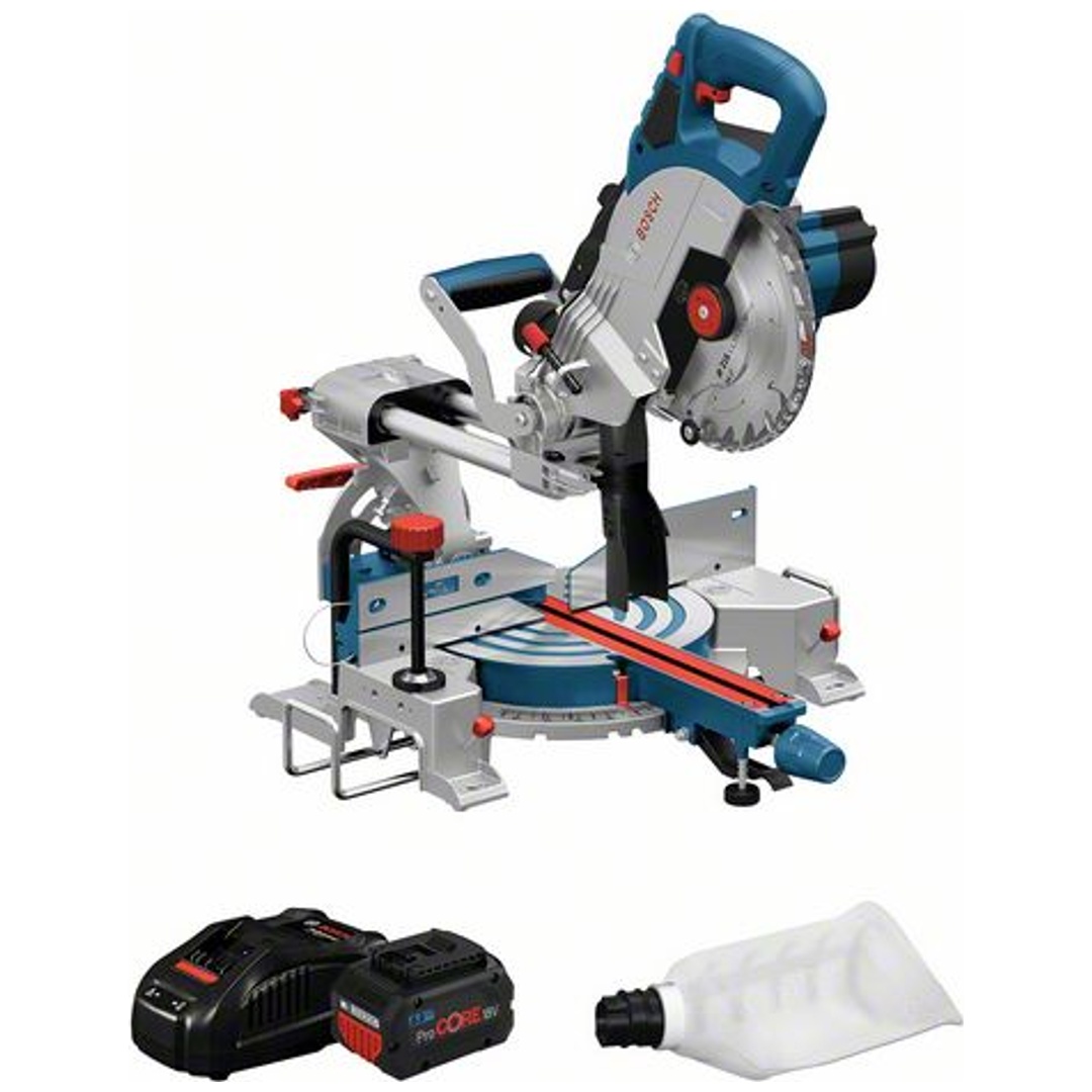 Bosch Professional Bosch Akku-Kapp- und Gehrungssäge BITURBO GCM 18V-216, incl. 2x Akku ProCORE 5,5 Ah, Schnellladegerät, Kreissägeblatt, Zubehör, Karton
