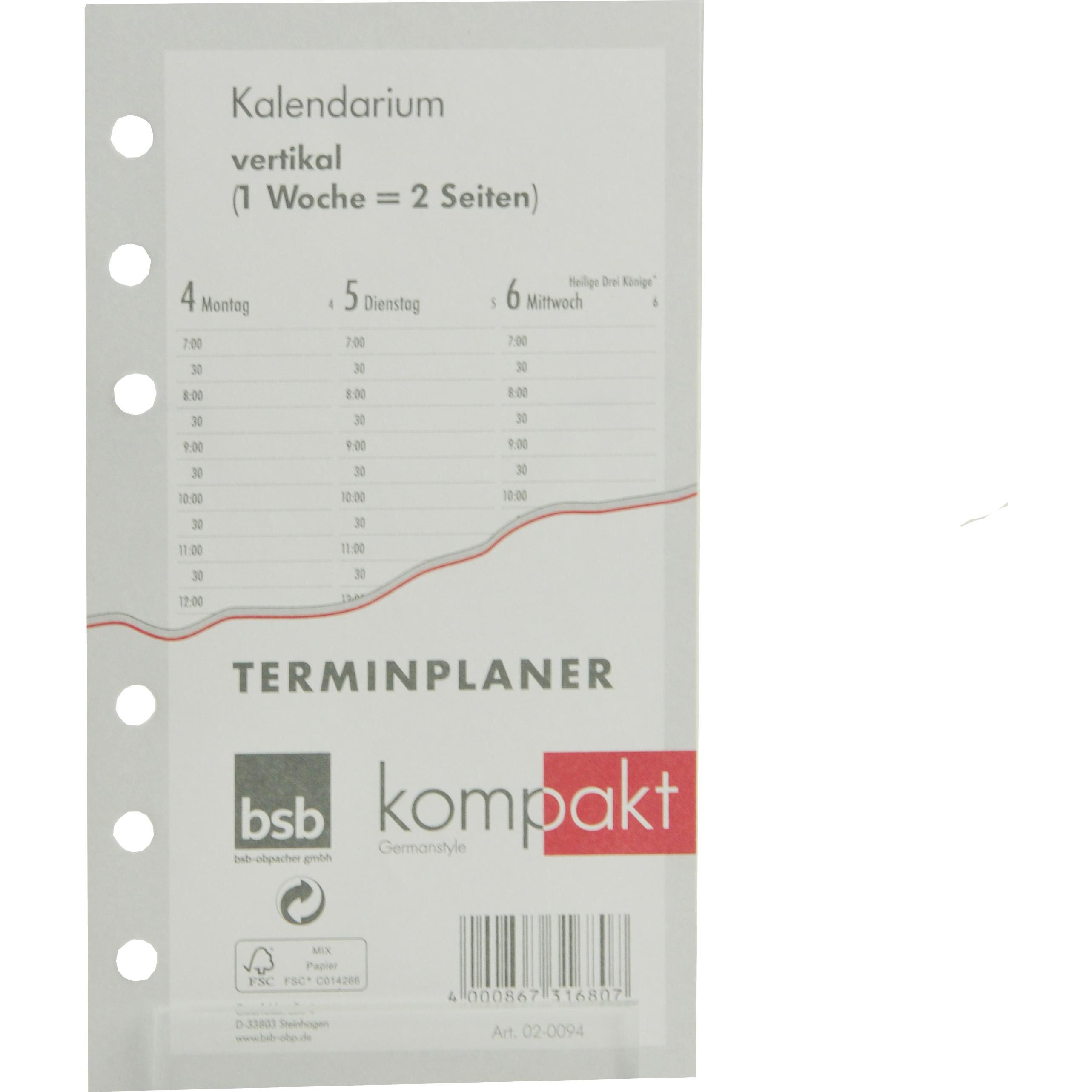 BSB-Obpacher Kalendarium für Timer ca. A6 1Woche/2Seiten (A6, 1 Woche / 2 Seiten) (02-0094)